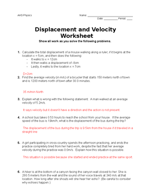 Displacement and velocity worksheet answers ahs physics