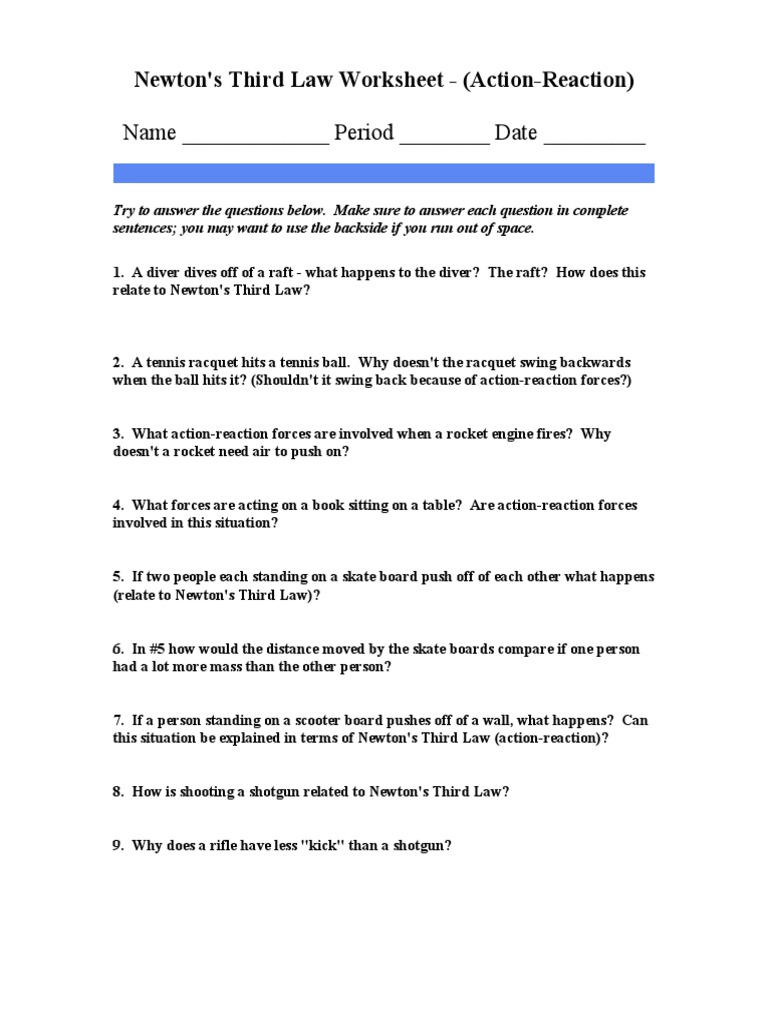 Newtons third law worksheet