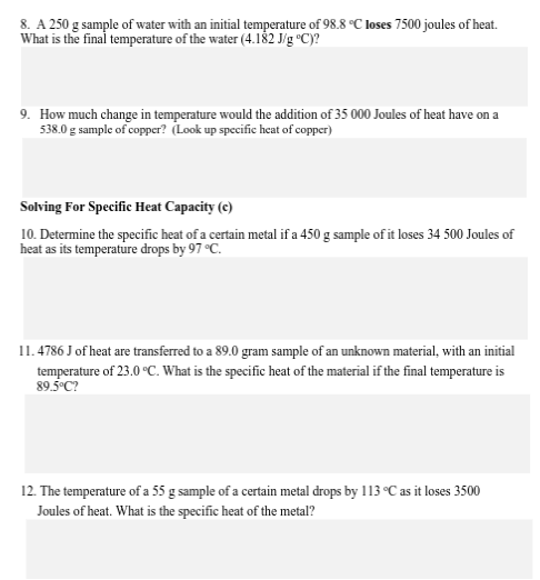 Temperature and heat worksheet answers