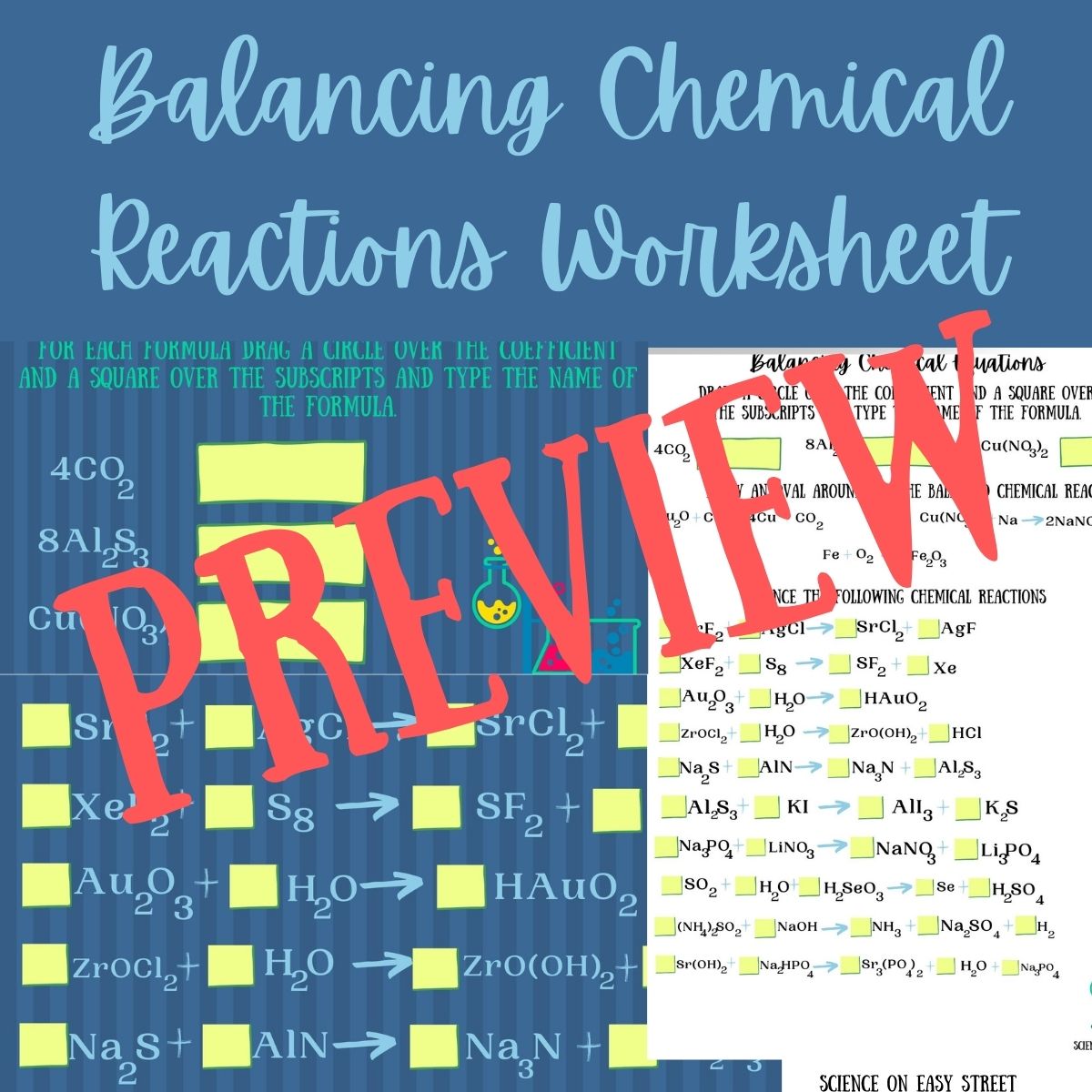 Chemical Reactions And Balancing Worksheets & Teaching Resources | TpT Balancing Chemical Equations, Word Equations, and Types of Reactions. by. The Science Vault. 19. $1.99. PDF. Activity. This product is a straight-forward 3-page worksheet that asks students to balance chemical equations, write the word equation, and identify the type of reaction. Includes 23 chemical equations.