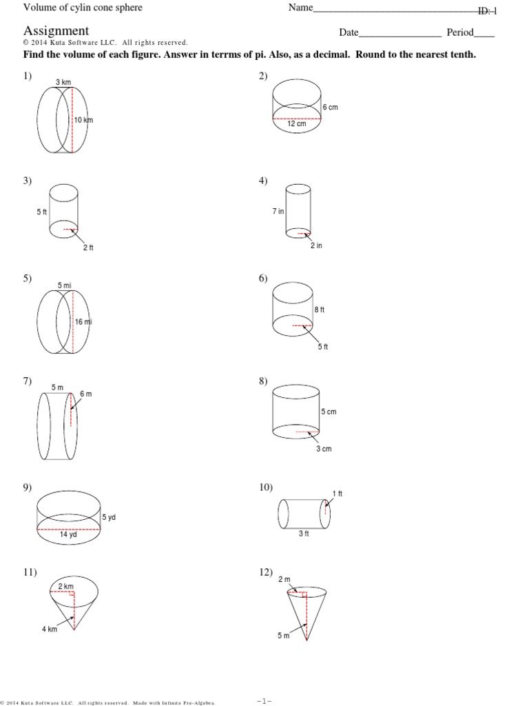 answersheetmagictrevor.pages.dev answersheetmagictrevor.pages.dev Volume Of Cones Cylinders And Spheres Worksheet Kuta Software Round your answers to the nearest tenth if necessary. 6-Area of Regular Polygons - Kuta Software LLC. Volume of cones cylinders and spheres worksheet kuta software Sometimes youre on a rollYoure on fire. 15 a cylinder with a diameter of 12 m and a height of 10 m. Volume cones spheres and cylinders displaying top 8 worksheets found for volume ...
