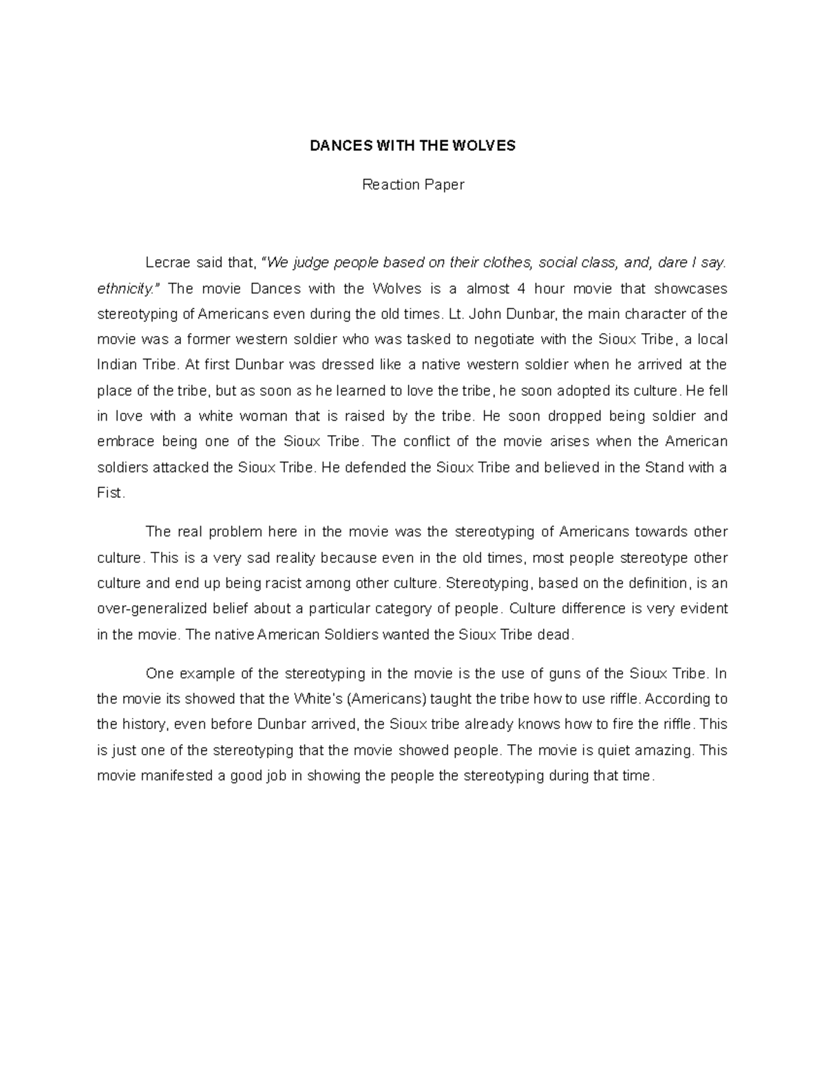 Reaction paper dances with the wolves - DANCES WITH THE ...