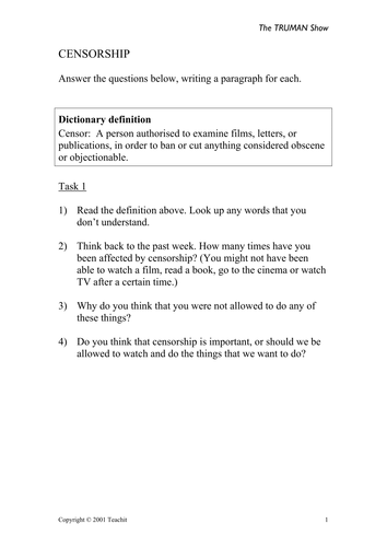 The truman show worksheet answers