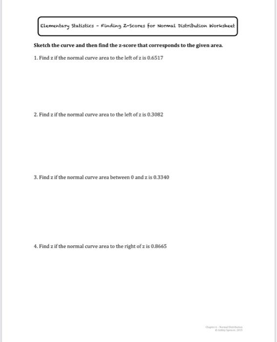 Finding Z Score Worksheets - K12 Workbook 1. Z-Scores Worksheet 2. Chapter 5: Normal Probability Distributions 3. Chapter 5: Normal Probability Distributions 4. Worksheet 5.2: Normal Distributions Finding Probabilities 5. z-SCORES 6. Lesson 7 Z-Scores and Probability 7. Standard Deviation and z-scores Worksheet Find the range ... 8. THE STANDARD NORMAL CURVE