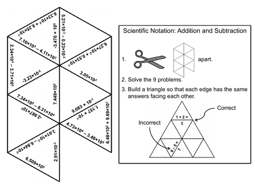 Operations with Scientific Notation Math Handbook Transparency Masters. Chemistry: Matter and Change. 93. Addition and Subtraction. Before numbers in scientific notation can be added or. › worksheet › articleAdding and Subtracting Numbers in Scientific Notation Give students practice adding and subtracting numbers in scientific notation with this helpful practice worksheet! This eighth-grade math worksheet begins with step-by-step instructions while walking through an example problem. Then students will use the same steps to add and subtract numbers in scientific notation on their own. softmath.com › adding-and-subtracting-radicalAdding and subtracting radical calculator - softmath Solving second order differential equations, examples of math trivia questions with answers, worksheet writing numbers in scientific notation, www. how to solve math problems multiplying and dividing numbers, google college math 208, mcdougal littell biology answers, free downloadable worksheets on subtracting integers. How to Add and Subtract in Scientific Notations? (+FREE Worksheet!) Aug 9, 2021 ... Step 2: Add or subtract the numbers (only decimal parts). Step 3: Convert the answer to scientific notation if needed. Addition and Subtraction ...