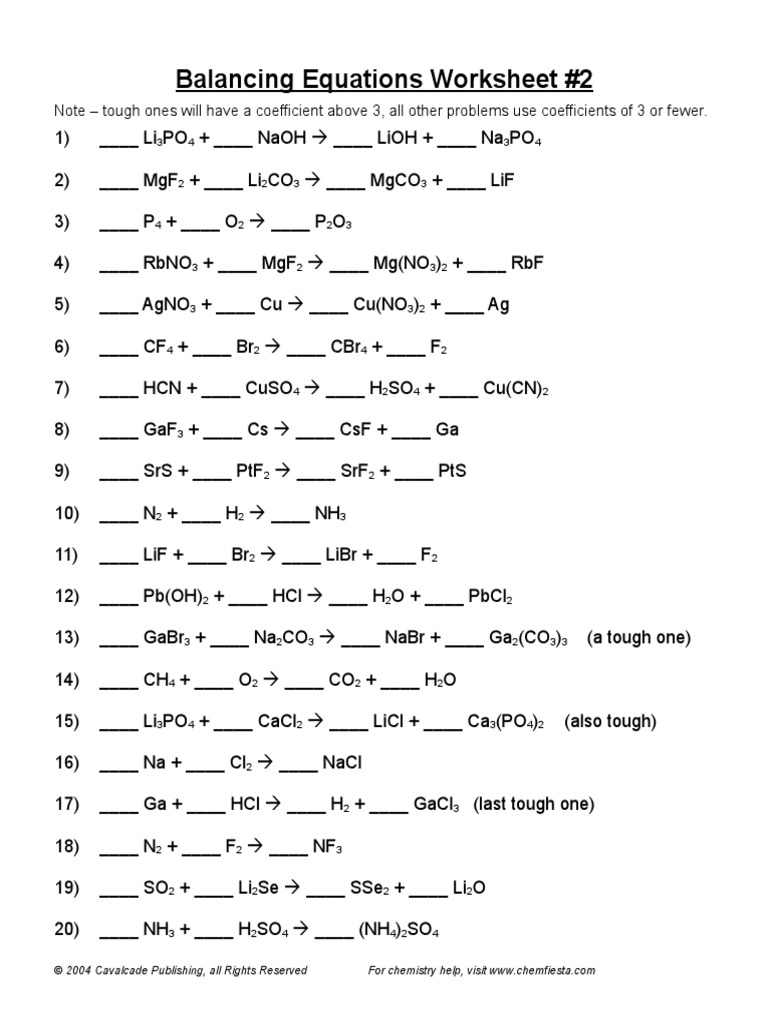 Balancing Equations Practice 2 Worksheet Answer Key Web Balancing Equations Worksheet Part 2 Answer Key · Balancing Requires A Lot Of Practice, Knowledge Of Reactions, Formulae, Valances, Symbols, And Techniques. The printable worksheets are provided in pdf format with separate answer keys. In the midst of them is this. (coefficients equal to one (1) do not need to be shown in your answers).