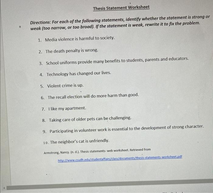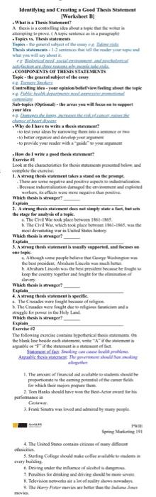 Identifying thesis statement worksheet