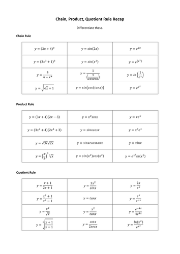 Chain Product And Quotient Rules Worksheets - K12 Workbook Worksheets are Chain product quotient rules, Work for ma 113, Product quotient and chain rules, Product rule and quotient rule, Dierentiation quotient rule, Find the derivatives using quotient rule, 03, The product and quotient rules. *Click on Open button to open and print to worksheet. 1. Chain, Product & Quotient Rules Reload Open Download 2.