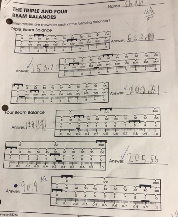 The triple and four beam balances worksheet answers
