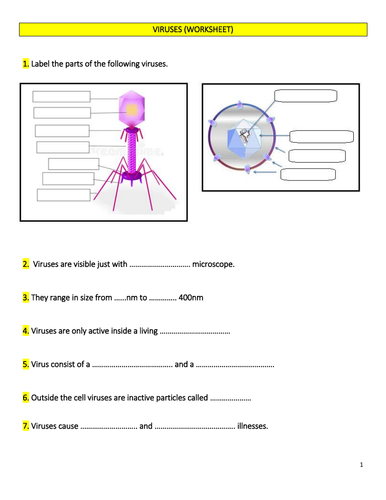 Bacteria and Virus Worksheets - Easy Teacher Worksheets Print Bacteria and Virus Worksheets Click the buttons to print each worksheet and associated answer key. The Biology of Viruses Identify the structure and function of parts on bacteriophages, a polyhedral virus, a rod-shaped virus. The Anatomy and Reproductive Parts of Bacteria A typical moneran is diagrammed below. Copy of Virus and Bacteria Worksheet - StuDocu Virus and Bacteria Worksheet. Viruses: 1. Do viruses belong to a kingdom? YES or NO 2. A virus is made of a core and a capsid 3. What do viruses have to support the idea that they are living? Viruses have characteristics of living things but not all of them. 4. Viruses that contain RNA are called:Retrovirus a. Give an example: HIV 5.