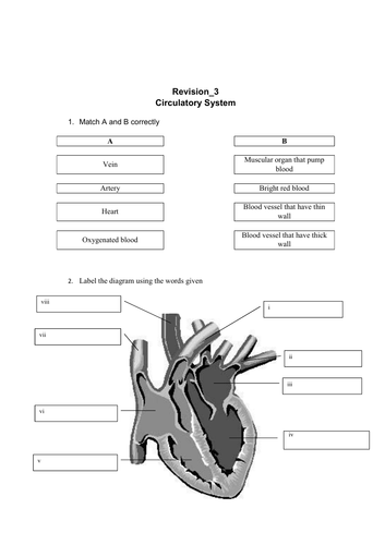Circulatory system worksheet for 6 - Liveworksheets.com ID: 784128 Language: English School subject: SCIENCE Grade/level: 6 Age: 8-11 Main content: Heart and functions Other contents: Add to my workbooks (98) Download file pdf Embed in my website or blog Add to Google Classroom