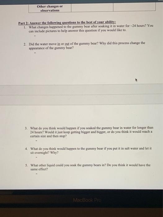 Solved Page Osmosis & Diffusion Worksheet Part 1: Gummy Bear ...