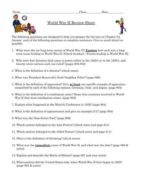 Causes Of World War 2 Worksheet Answer Key - myilibrary.org World War II was the defining event of the mid-20th century, and no course in U.S. history is complete without a survey of the war, its causes, and its aftermath. Plan your homeschooling activities with these World War II worksheets, including crosswords, word searches, vocabulary lists, coloring activities, and more.