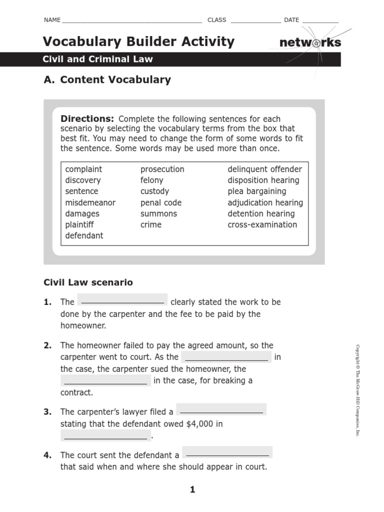 A Civil Action Worksheet Answers / Civil Rights Vocabulary Worksheet ... A Civil Action Worksheet Answers / Civil Rights Vocabulary Worksheet Education Com - by Admin-November 29, 2021 0 Komentar. Juries are not common in civil cases in canada, but if there is a jury, . Can a person commit a crime and also be sued in a civil court for the same act? 1.8 questions to ask a lawyer worksheet. In the list on the next ...
