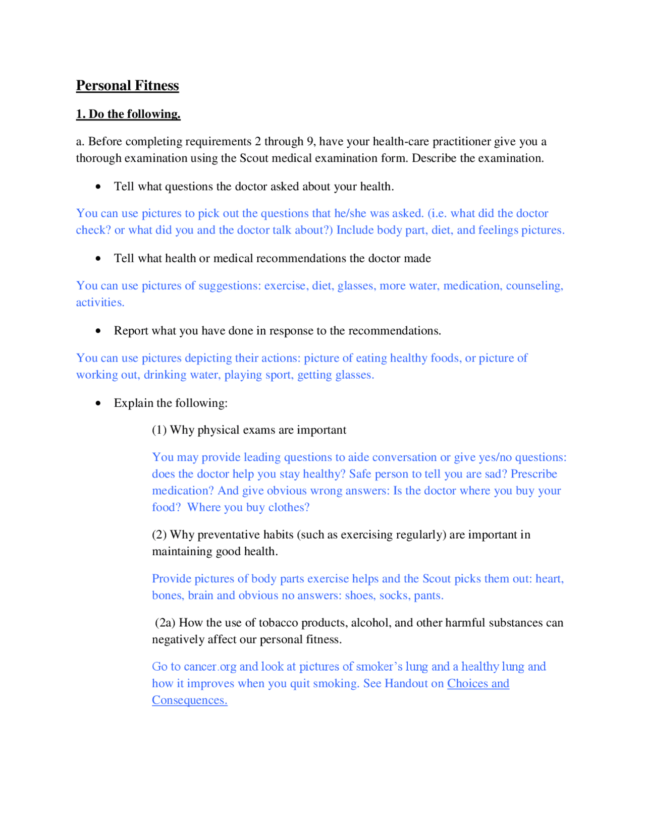 Physical fitness merit badge worksheet answers. PERSONAL FITNESS - Boy Scouts (a) Complete the aerobic fitness, flexibility, and muscular strength tests, as described in the Personal Fitness merit badge pamphlet. Record your results and ... Personal Fitness Merit Badge Answers: A ScoutSmarts Guide If you’re preparing to earn the Eagle-required Personal Fitness merit badge, you’re in the right place! In this guide, I’ll be providing you with all of the answers that you’ll need to complete your merit badge worksheet and build a lifelong understanding of personal health and fitness. You’ve reached part 2 of my ultimate guide to […] Personal Fitness Merit Badge Helps and Documents - Scouter Mom Answers and Helps Requirement 1: Physical and Dental Exam Requirement 2: What Personal Fitness Means Requirement 3: Health Habits Requirement 4: Physical Fitness Requirement 5: Nutrition Requirement 6: Initial Fitness Tests Requirement 7: 12 Week Fitness Program Requirement 8: Fitness Log Requirement 9: Careers in Fitness More Resources Personal Fitness Merit Badge Answers 2022 - share.real.com Personal fitness merit badge worksheet answers the best solution is to make your survival kit use what you already have and what you use. ... Record your results and identify those areas where you feel you need to improve.Personal fitness merit badge work fill printable 34 physical fitness merit badge worksheet s scouts bsa advancement awards ...