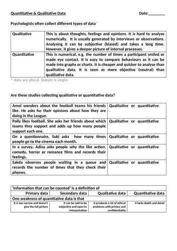 Qualitative vs quantitative worksheet. The Corner Forum - New York Giants Fans Discussion Board ... Big Blue Interactive's Corner Forum is one of the premiere New York Giants fan-run message boards. Join the discussion about your favorite team! Questionnaires: Definition, advantages & examples | QuestionPro Open-Ended Questions: Open-ended questions help collect qualitative data in a questionnaire where the respondent can answer in a free form with little to no restrictions. Dichotomous Questions: The dichotomous question is generally a “yes/no” close-ended question. This question is usually used in case of the need for necessary validation. Nominal Data - Examples, Definition, Analysis, Graph - Cuemath Categorical data is qualitative in nature as logical and arithmetic operations cannot be performed on such data. Non-parametric statistics is used in the analysis of ordinal and nominal data as they are categorical in nature. Other types of data include ratio and interval data that are quantitative in nature. Nominal Data Defintion CNN 10 - CNN Dec 05, 2022 · CNN 10 is an on-demand digital news show ideal for explanation seekers on the go or in the classroom.