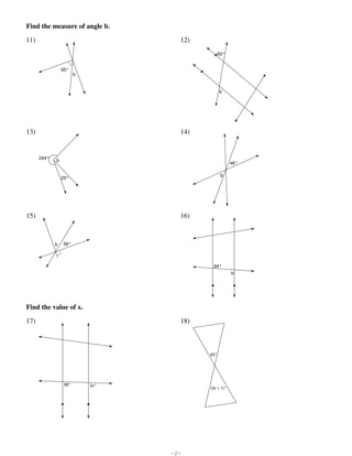 Angle Relationships Worksheets - Easy Teacher Worksheets This worksheets explains how to find the measure of an angle by considering its relationship with other lines and angles. A sample problem is solved, and two practice problems are provided. Measured Relationship Worksheet Ten problems are provided. Sample problem: The complement of an angle is three times as big as the angle.